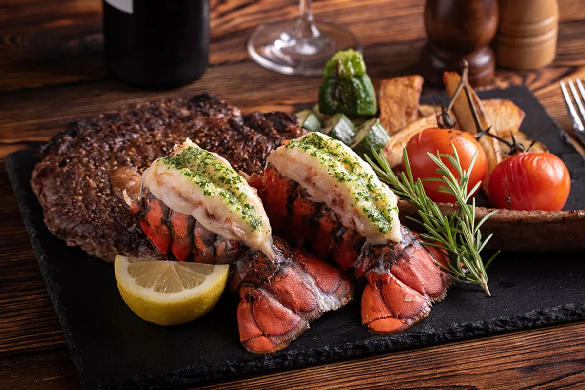 Wine Pairing: Bold red wine (Cabernet Sauvignon) complements steak; buttery Chardonnay pairs well with seafood.